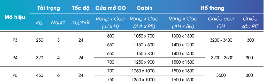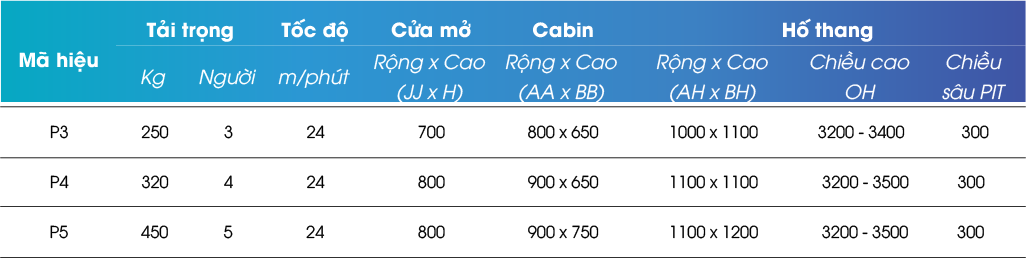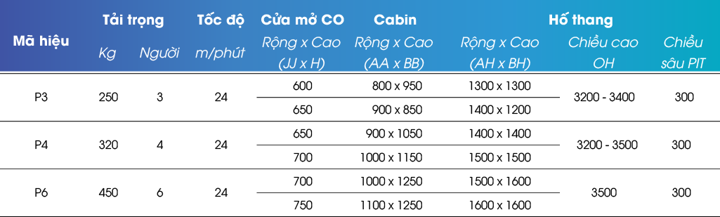- Kích thước hố thang tối thiểu: 850mm (rộng) x 1050mm (sâu)